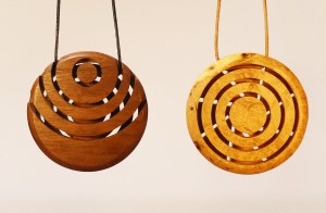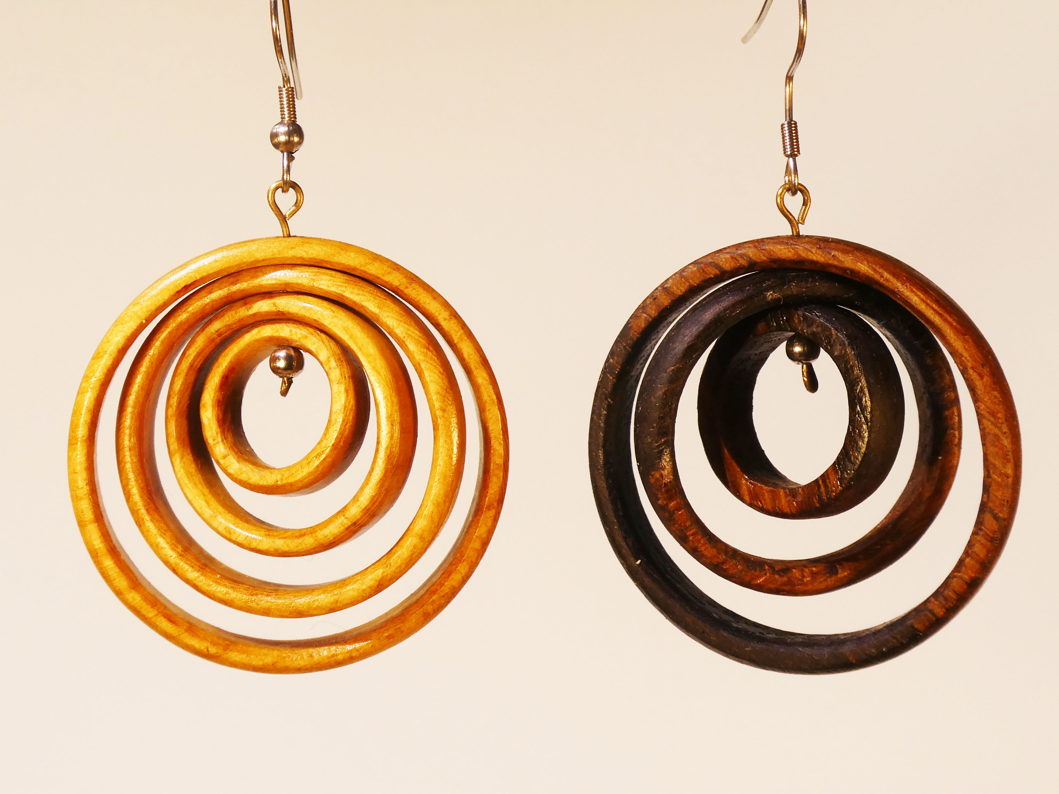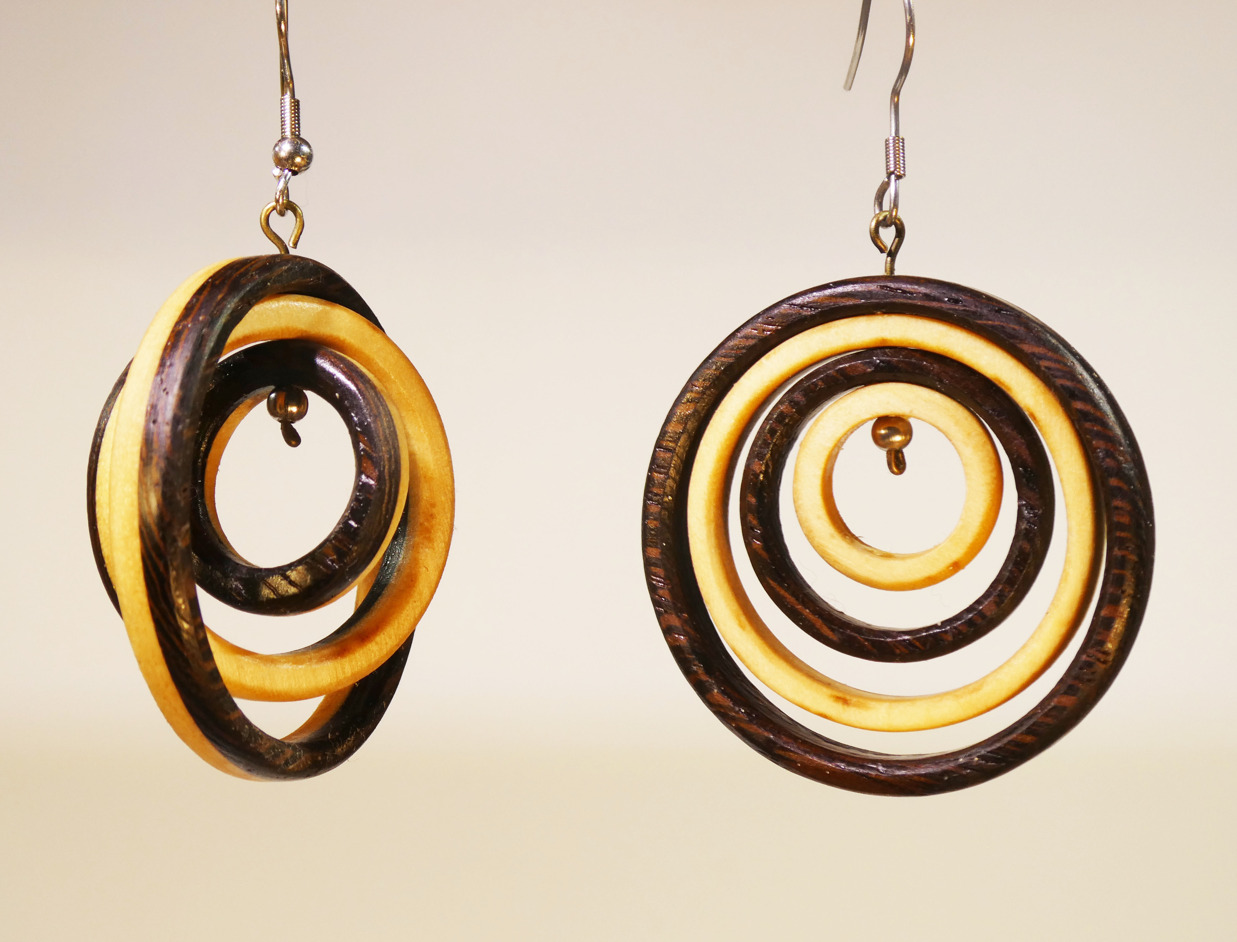 Holzschmuck in Nußbaum, Ahorn, Wenge, Kirsche und farbiges Acrylglas